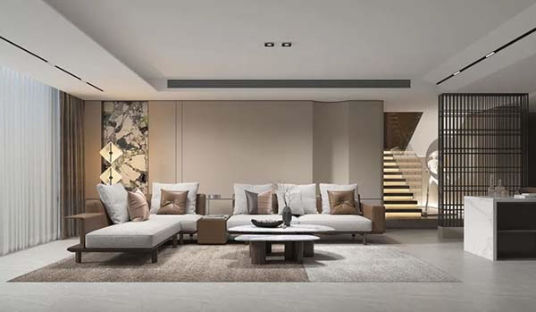 用木材,石材,皮料,金属的材质来诠释轻简奢时尚,用常用的室内装饰当中的材质来设计家居。